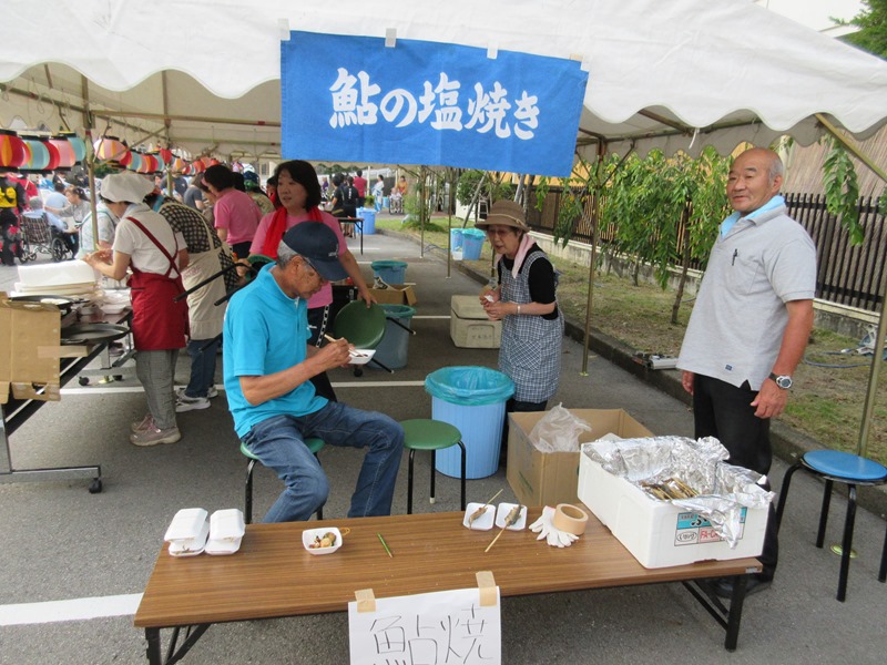 一番人気の鮎の塩焼き!今年も200匹準備しました。鮎コーナーは頼りになる男衆が仕切ります。