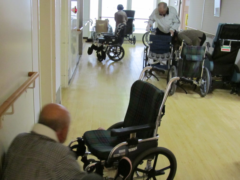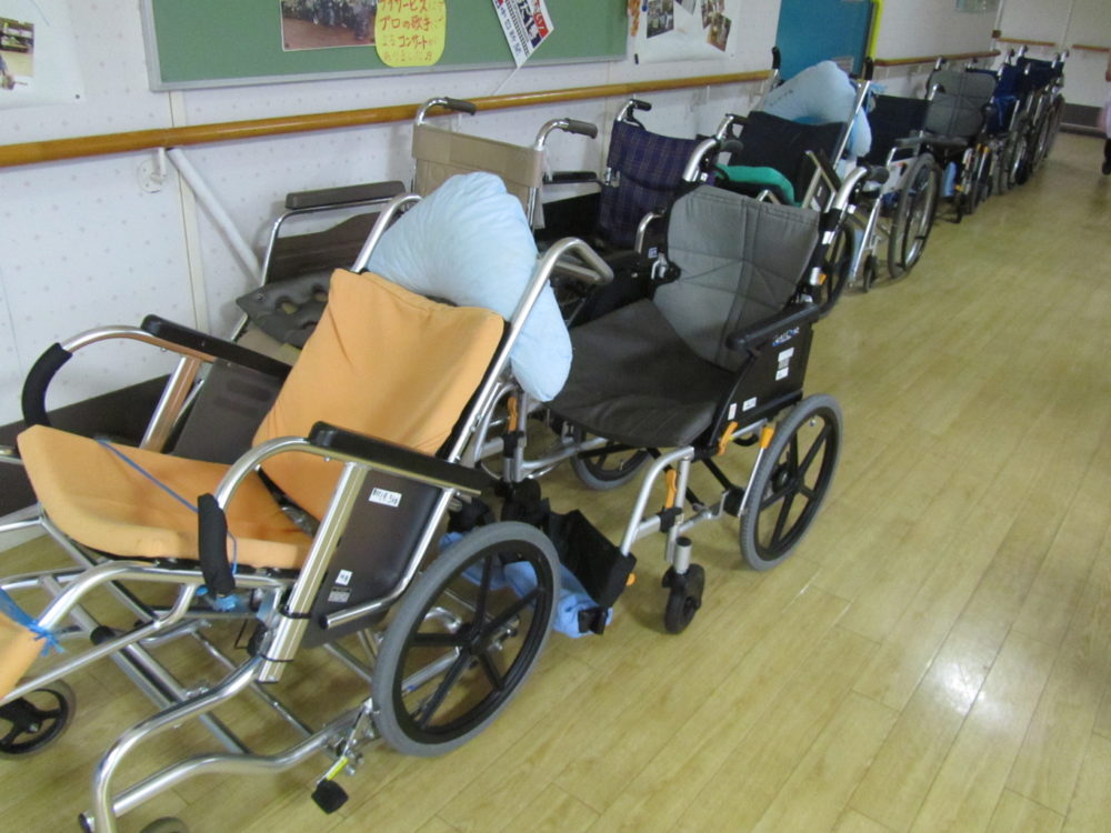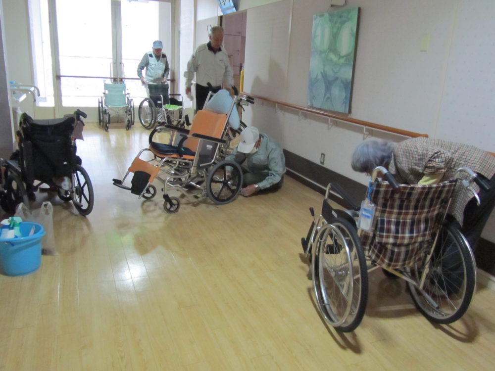 車椅子は多くの入所者様が毎日使用され、使用時間も長く、なかなか一斉に掃除をすることができません。毎年この時期にディセンバー会の皆さんが来てくださるので本当に助かります。