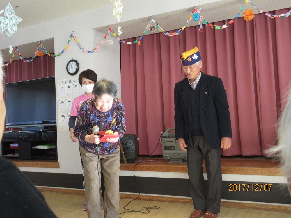 「忘年会とは忘れる年と書きます。物忘れが多くなった方はみえますか?」などと質問され、笑われる利用者も多く和やかな雰囲気での始まりとなりました。