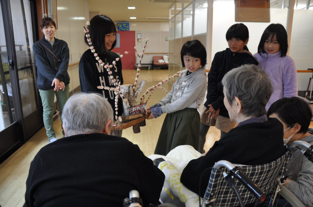 今年も、飛騨エンジェルスの皆さんが花餅かざりを持って訪問してくださいました。 朝から餅つきをして作られたそうです。