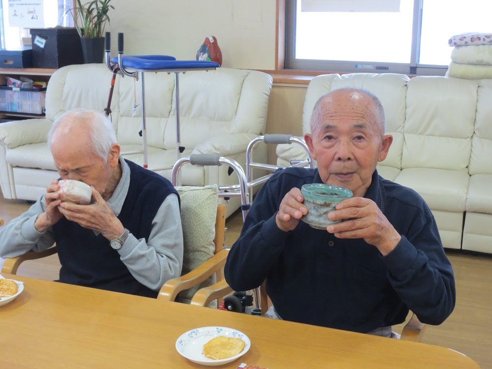 この日は行事浴に「しょうぶ湯」、給食は「朴葉寿司」、おやつには「抹茶」と、普段とはちょっと違った部分が重なった日でした。