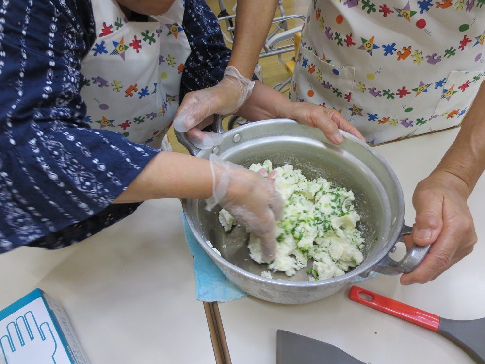 お次に片栗粉(じゃがいもの1/3量)を加えて混ぜます。