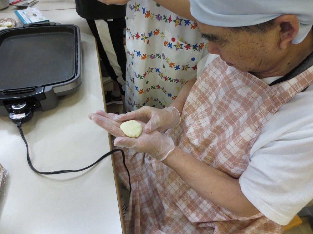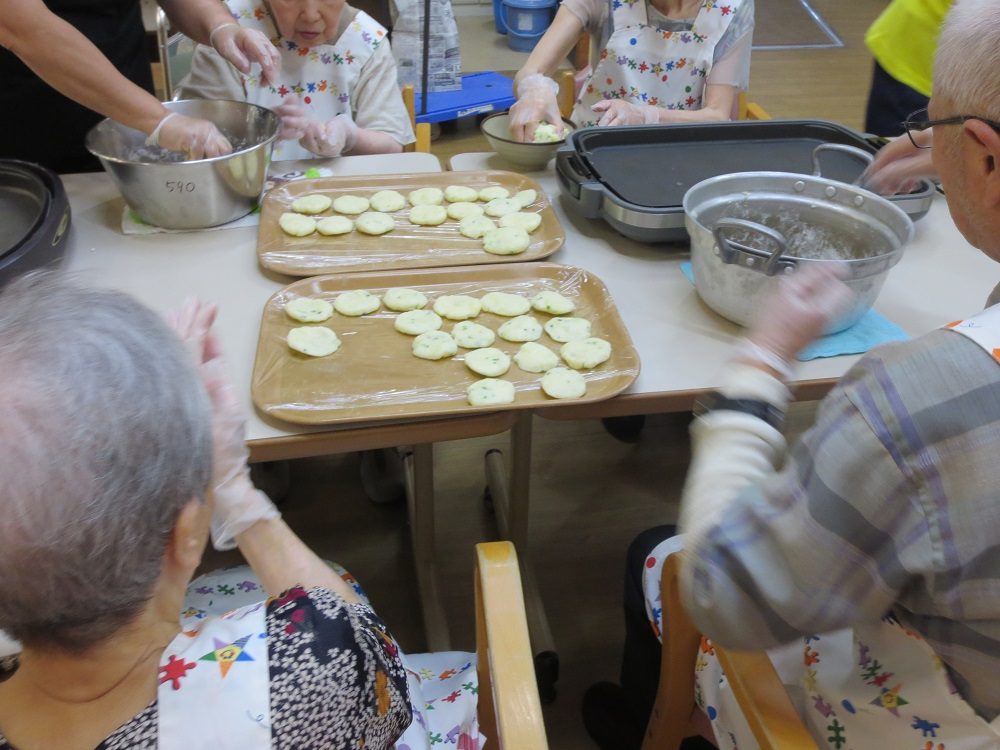 「これくらいの大きさか?」と、なるべく同じ大きさになるよう相談&確認しながら丸めてポンと平たくしていきます。