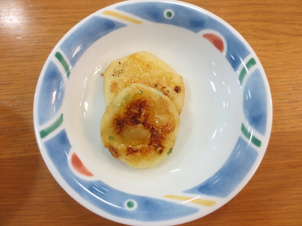 最後に焼いた「いももち」に甘辛い餡をかけました。