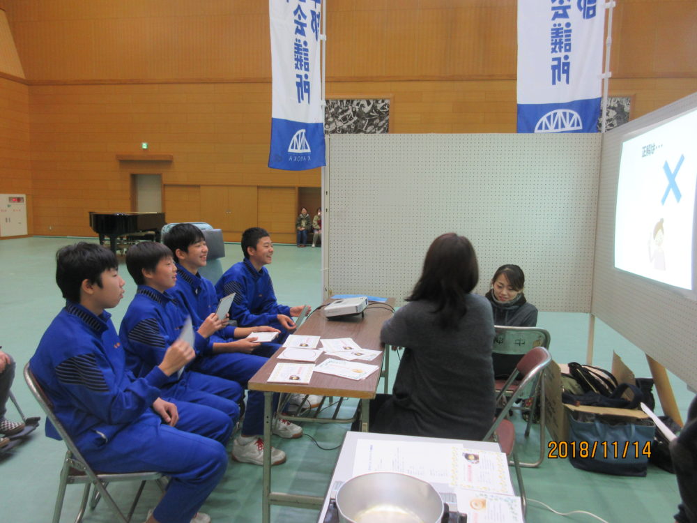 その後は介護福祉士試験問題にチャレンジ!と言う事で、厳選し1問1答でクイズを行いました。○✖形式で答えてもらいましたが、ここにも未来の介護福祉士候補が沢山いて、職員は期待に胸をふくらませました(#^.^#)