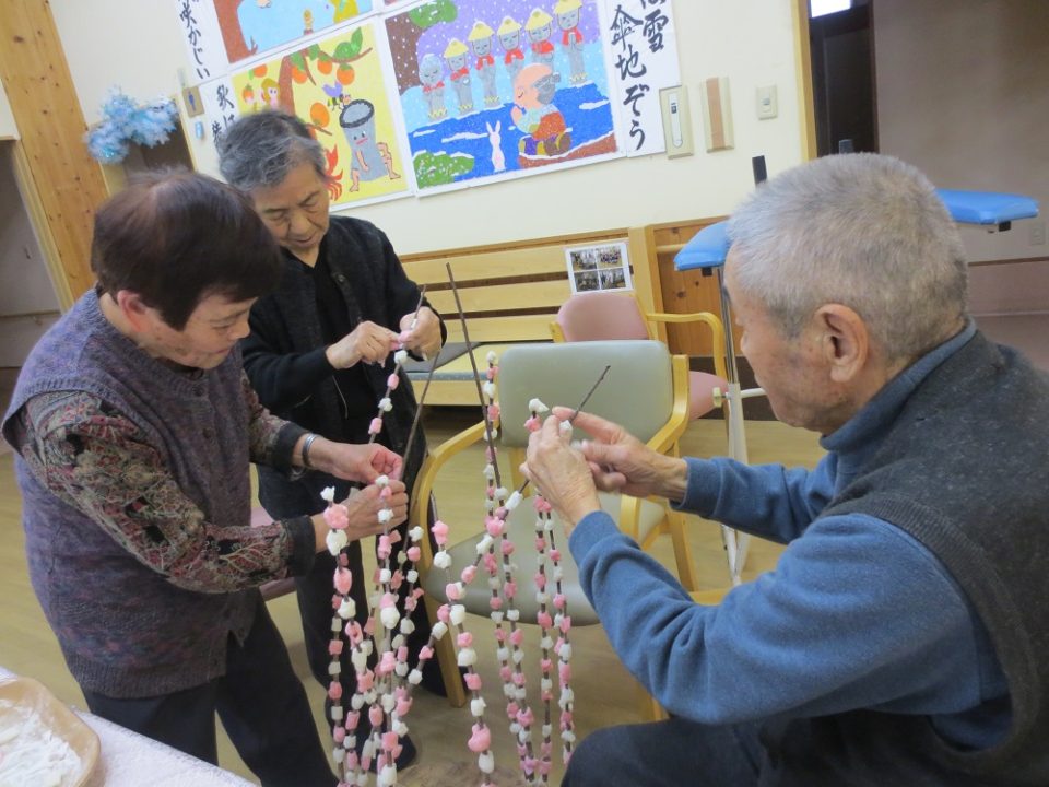 花もちが出来上がり、フロアがぱっと華やかになりました。