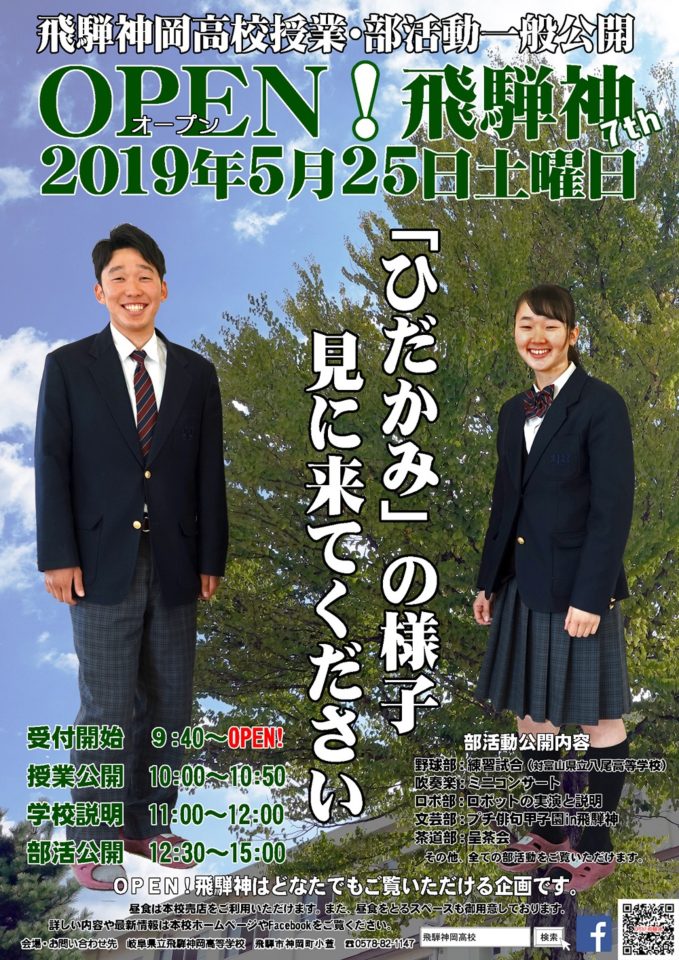 令和元年5月25日(土)9:40から、今回で7回目を迎える「Open!飛騨神」が飛騨神岡高等学校で開催されます!