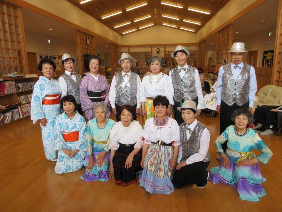 西川流花清様の「めでた」から始まり、フォークダンスサークル様の「マイムマイム」など馴染みの曲もあり、一緒に手を動かしながら踊られる利用者もみえました。