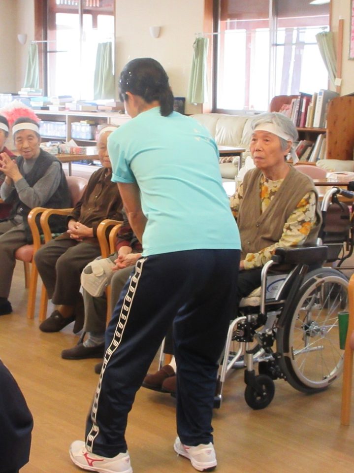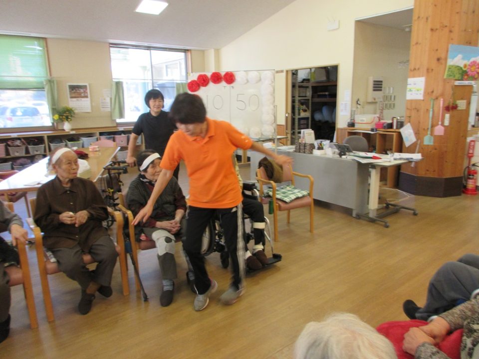 お題を見た職員がジェスチャーを行い、挙手の早かった利用者に答えてもらいます。