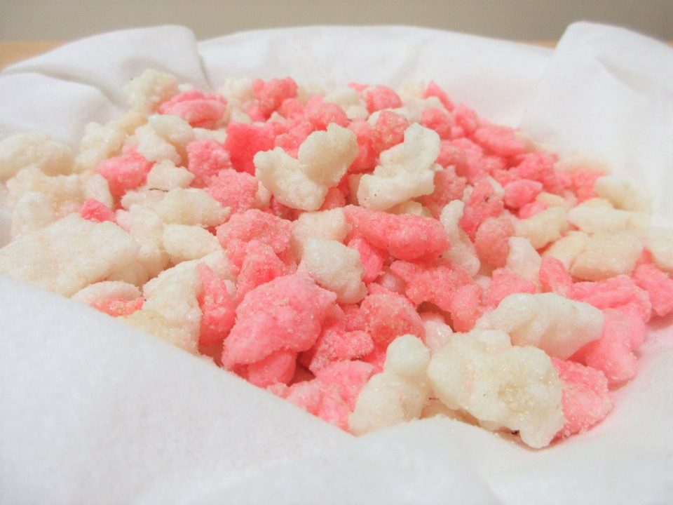 このまま捨ててしまうのはもったいないので、枝から餅を外し、油で揚げて「おかき」にします!