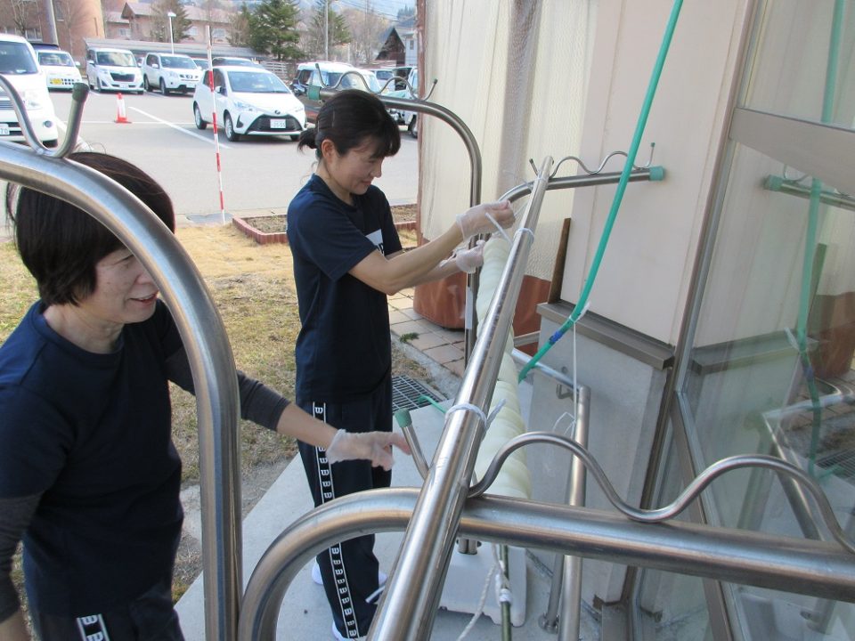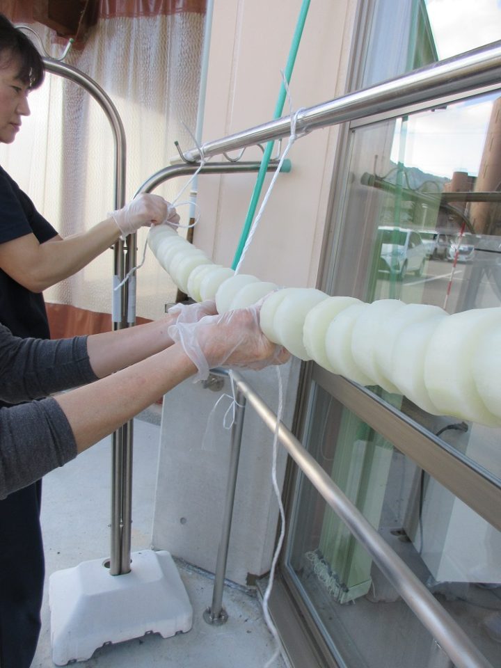 切って、茹でて、棒に刺して、外に吊るし…と結構大変でした。