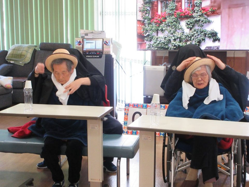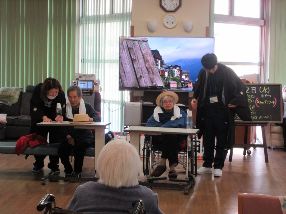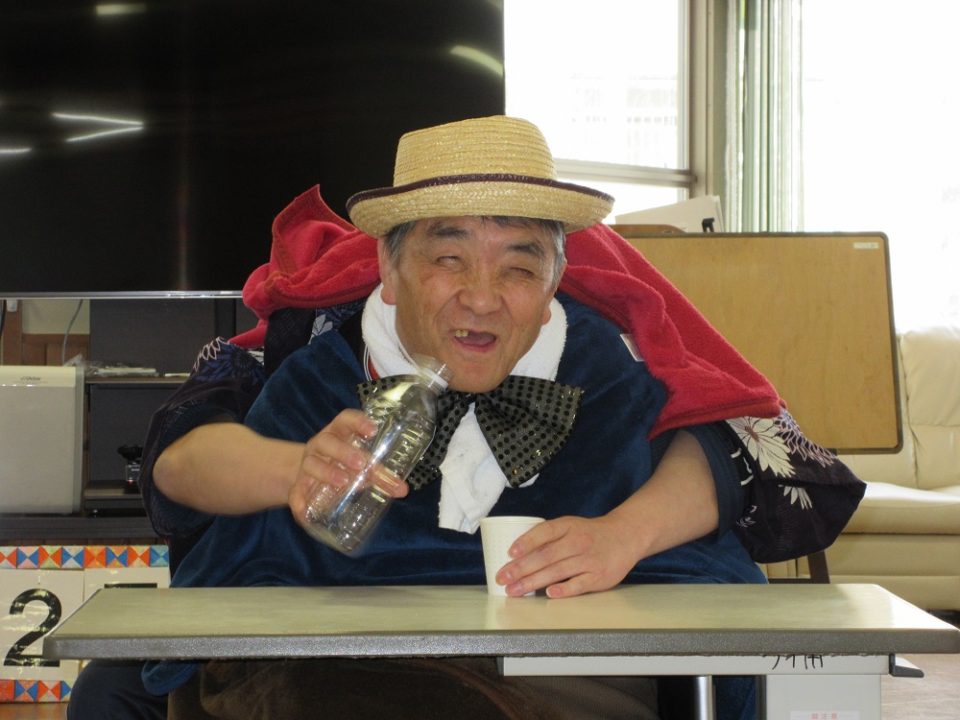 何か利用者と一緒にみんなで楽しめることを…と考え、二人羽織りやビンゴゲーム、じゃんけんゲームに手品などを行いました。