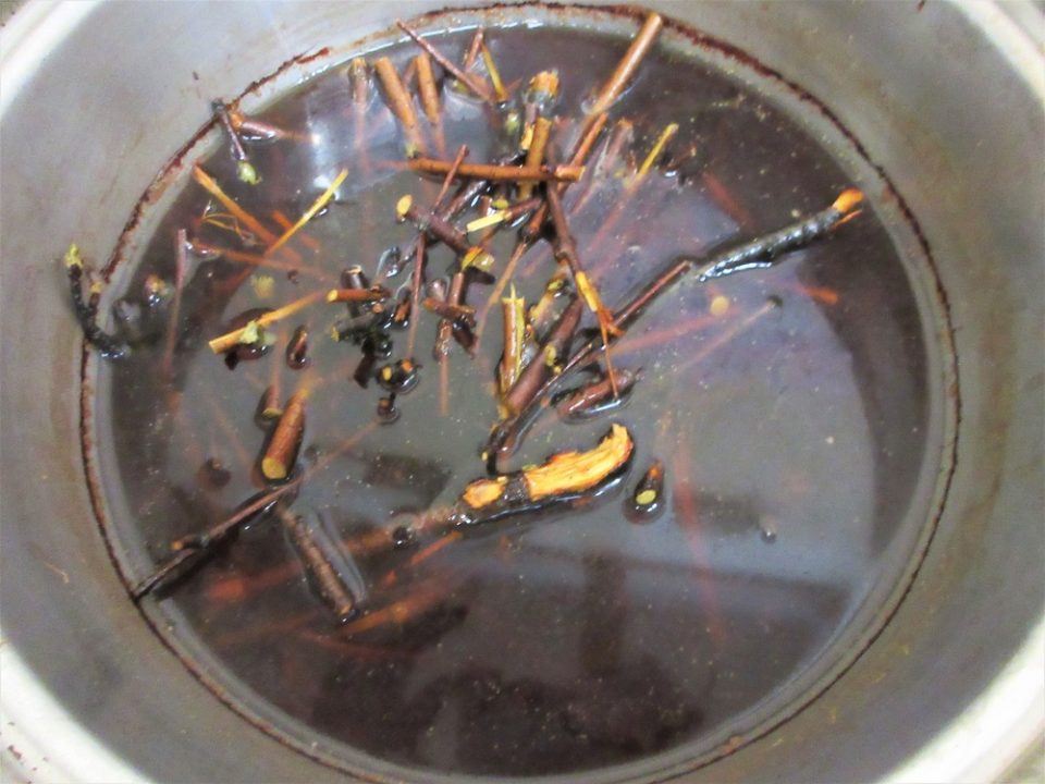 さくらの枝を煮詰めて「桜木染め」をしたり。