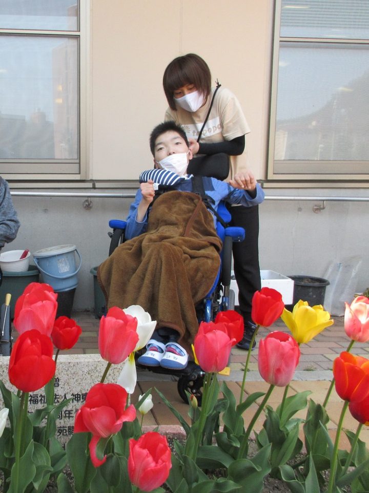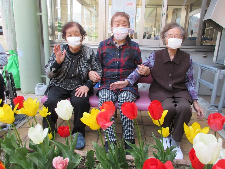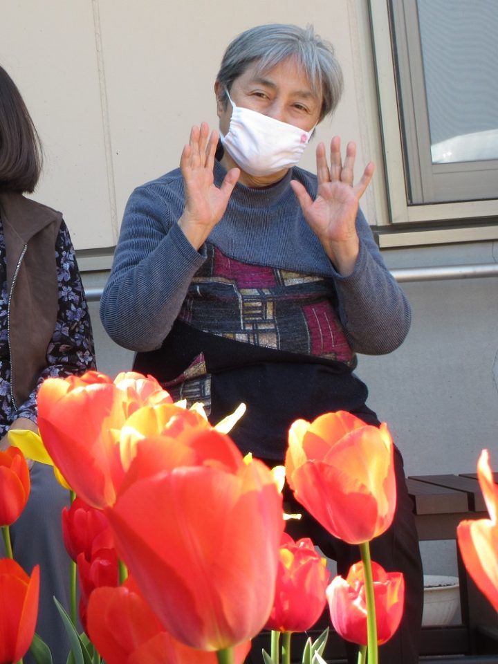 チューリップなどの花がたくさん咲き始めた頃には、日光浴を行ったり。