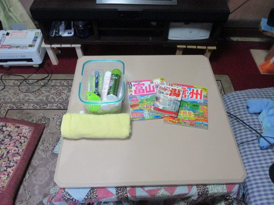 常に持って行く物は、温泉セット・寝袋・枕・アイマスク・温泉本です。