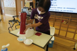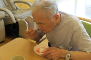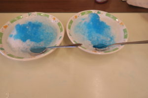 8月下旬に、自由活動の時間を利用して、かき氷を作り食べていただきました。