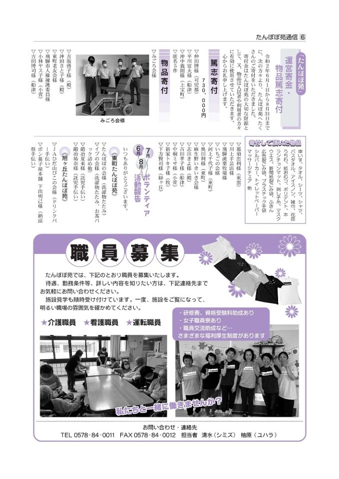 さて、今回のたんぽぽ苑通信は、6月・7月・8月の出来事を載せています。