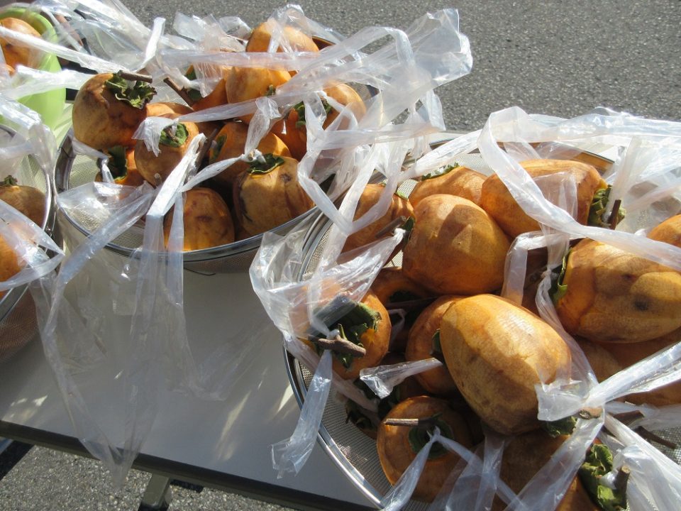 たかはらの職員さんが「デイでも干し柿に使ってよ!」とたくさんの渋柿を分けてくださいました。