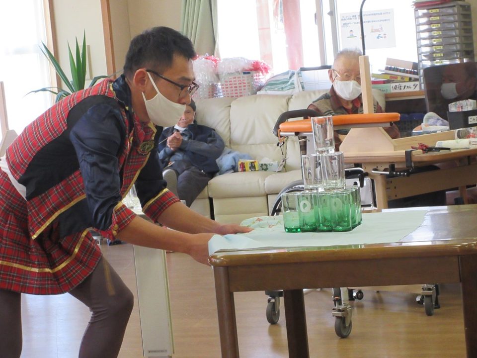 旭ヶ丘デイサービスでは、11月を「文化祭月間」として、フロアに作品を展示したり、ゲームをしたり、職員の余興を楽しんでいただいております。