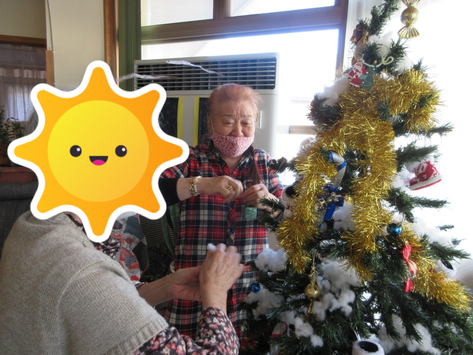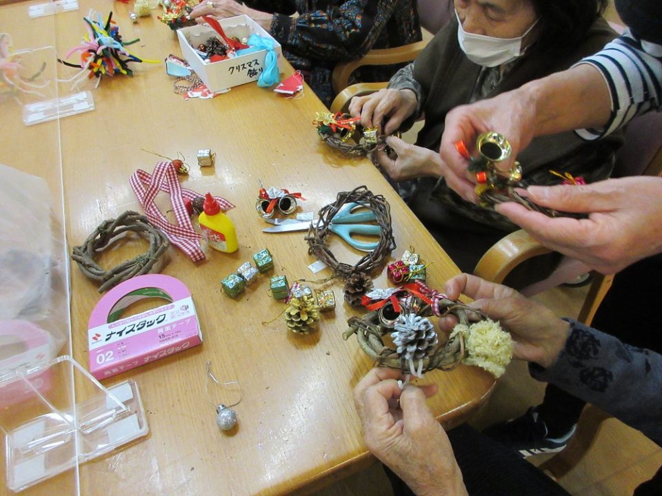 クリスマスツリーを飾りつけたり、リース(クリスマス&正月バージョン)を作っています。