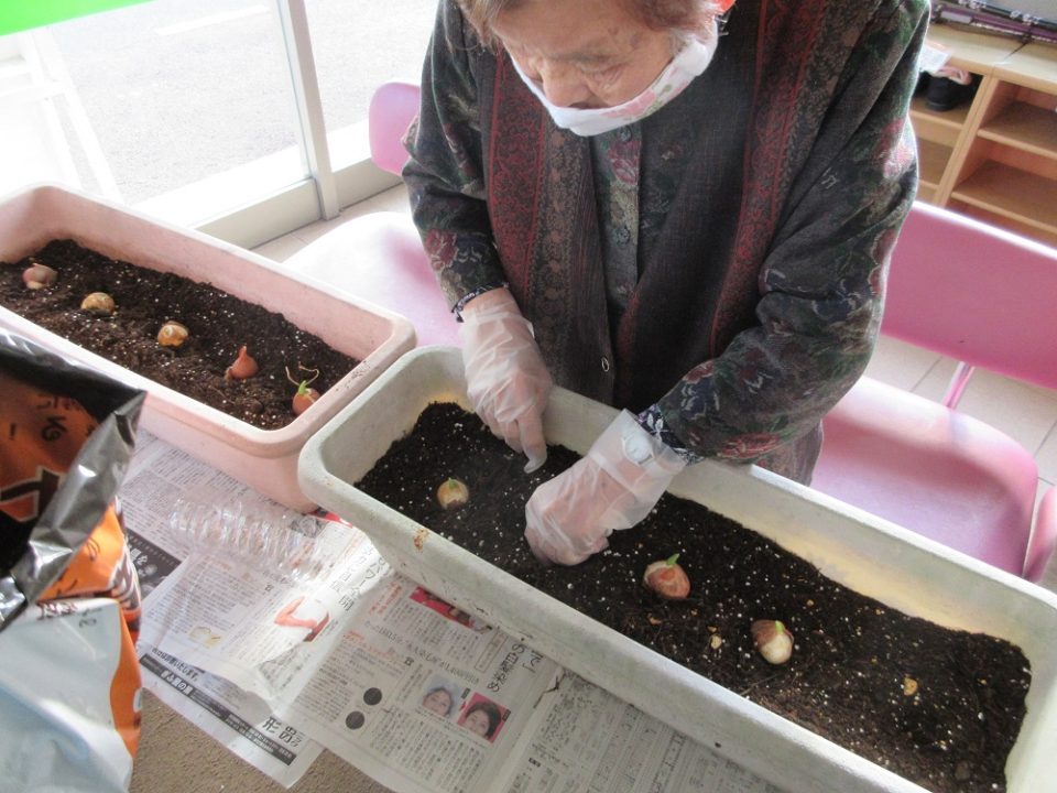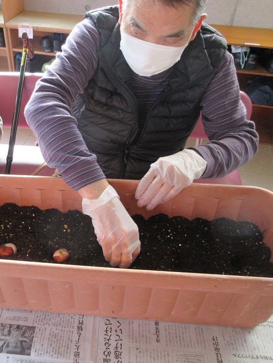 「これは何色のチューリップかな?」「この球根は小さいけど花は咲くんか~?」と、来年の春を想いながら植えてくださいました。