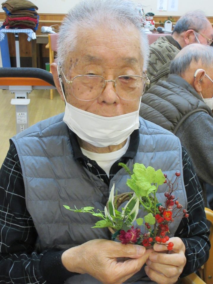 この時期、花を楽しむ機会が減るので、リースの木の実などにも癒されています。