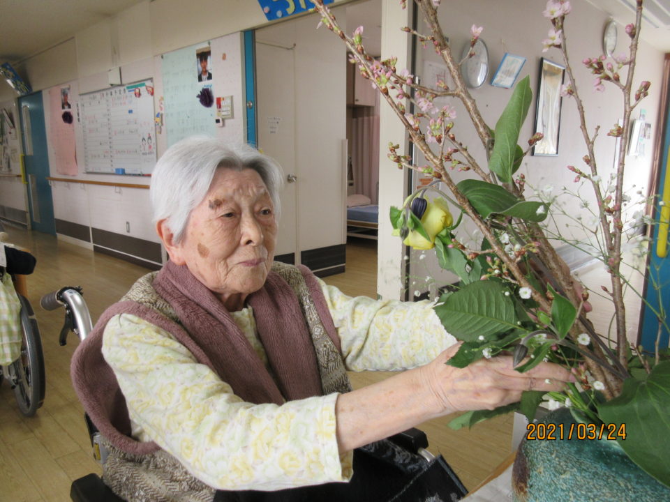 3月24日たんぽぽ苑特養の『やよい会』を行いました。『やよい会』とは入所者様に春を感じていただきながらおいしいおやつを食べていただく行事です。