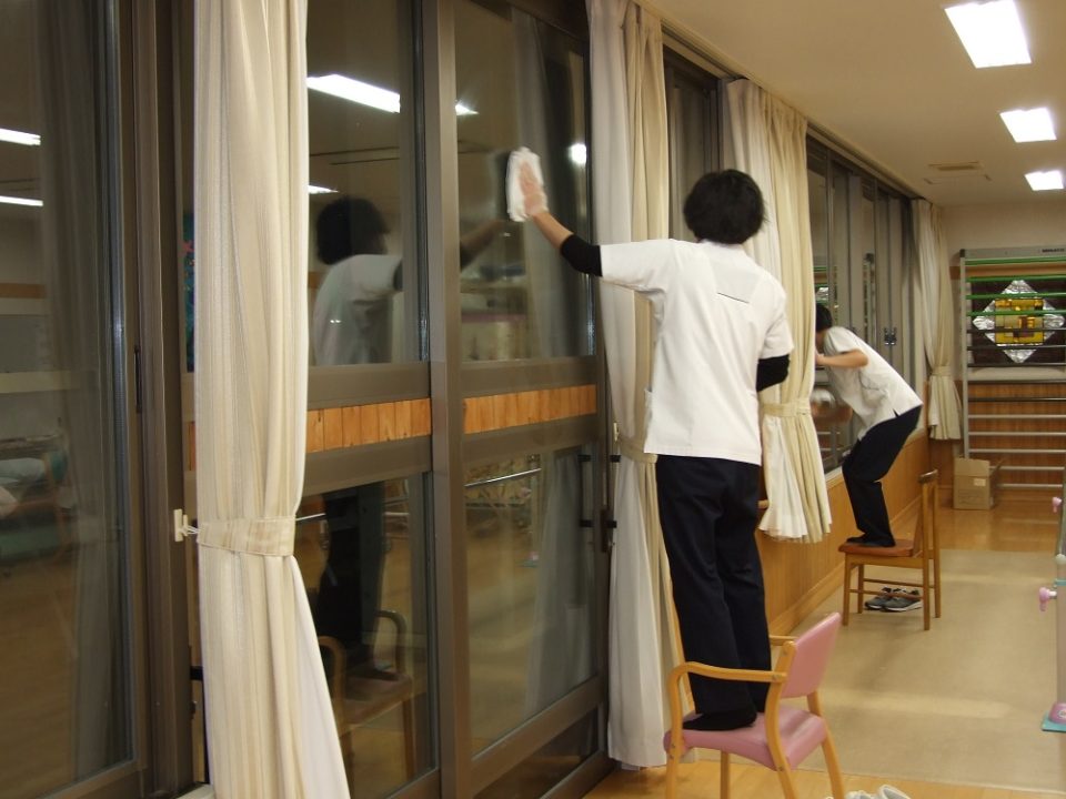 たかはらではリバビリ室での窓越し面会を継続中。そこで大事になってくる大きな窓! キレイにしていただきました!!