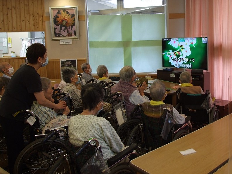 カラオケを楽しみました♪ 投稿日: 2022/6/15 水曜日 カテゴリー: できごと 施設:介護医療院たかはら n.nakano 2階からカラオケを楽しむ声が聞こえたので、カメラを持って走りました。 今日は夕食前にレクリエーション。 歌に合わせて手拍子♪ 皆さん楽しんでみえました。 たかはら