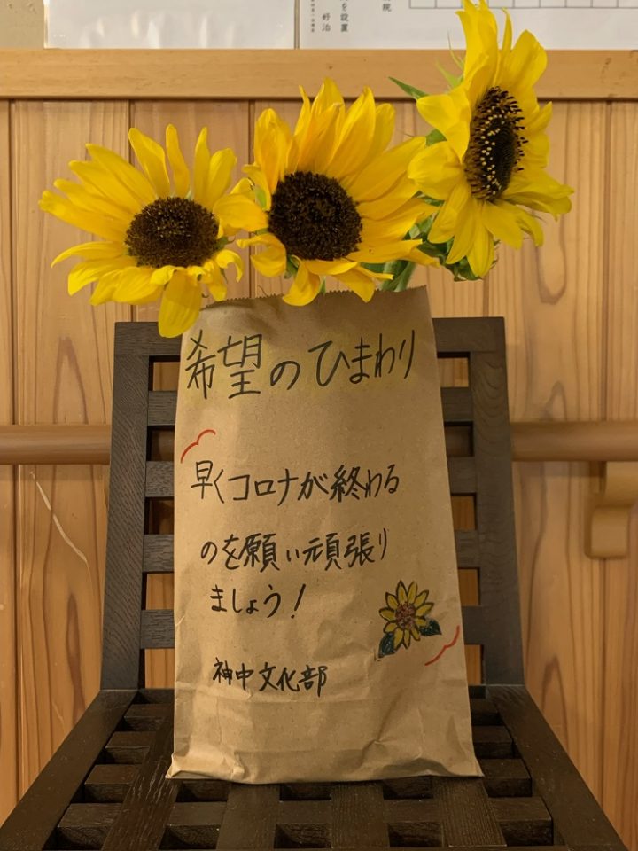 神中文化部からの応援メッセージを励みに、元気なひまわりのように陽の当たる方を向いて、日々を過ごしていきたいです。