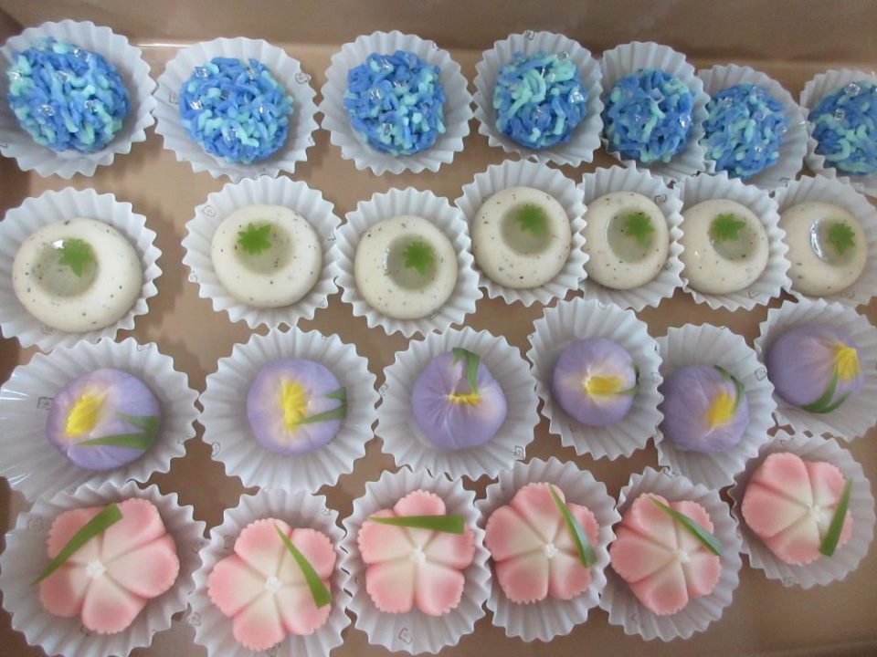 午後のおやつの時間には、あじさい・菖蒲など季節を感じる練り切りやゼリーを召し上っていただきました。
