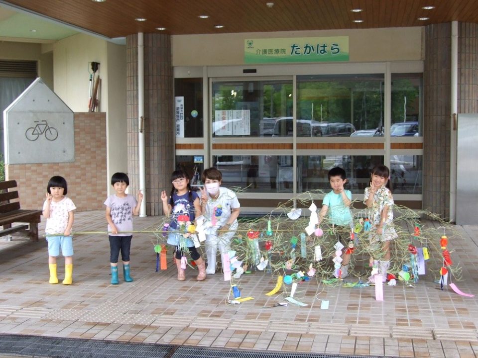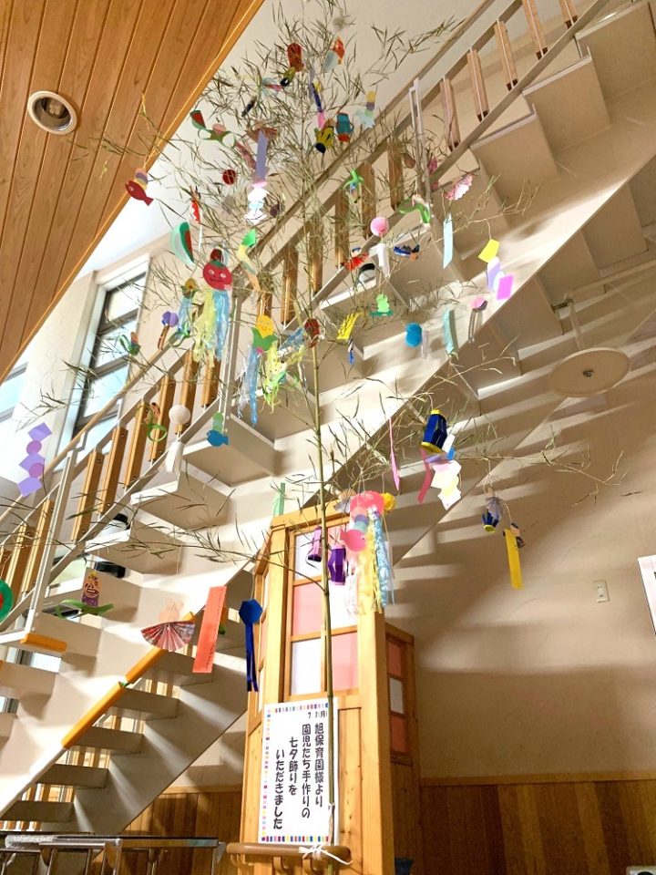 7月 梅雨の晴れ間、旭保育園の園児たちが、大きな笹飾りを届けてくれました。