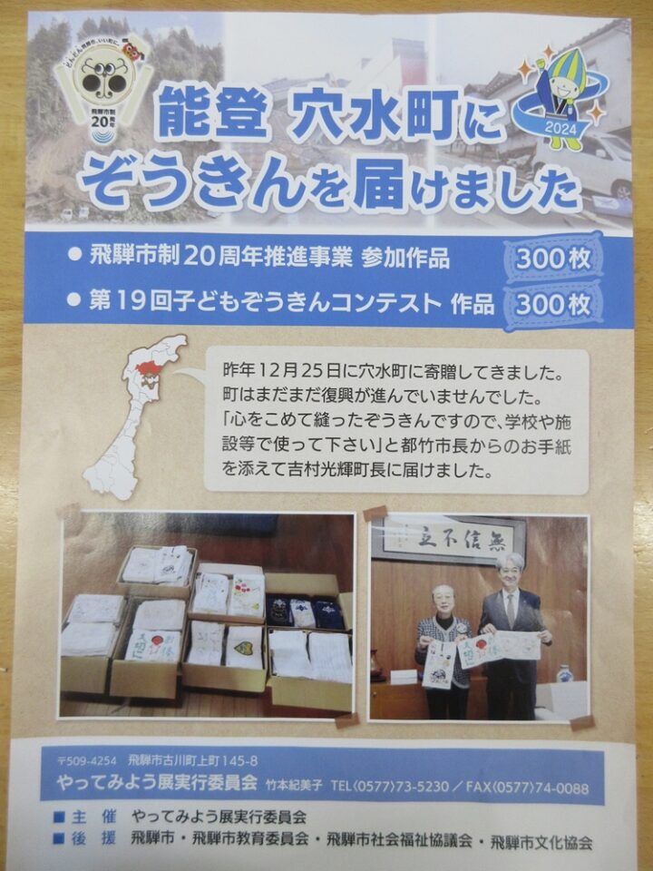 「能登の地震で特に被害が大きかった穴水町にぞうきんを届ける」というものでした。