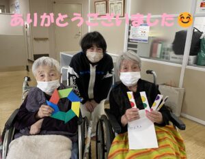 入居者の方からは「たくさんゲームをもらえたので、どれからしようか悩んでしまう」といった声や、折り紙で作った飾りを見て「きれいな飾りやな。どこに飾らしてもらおうか」と、話していました。