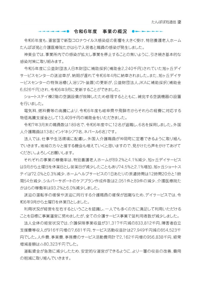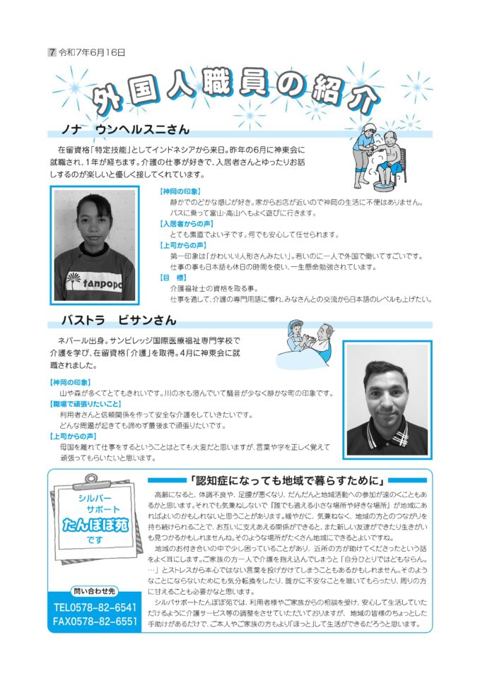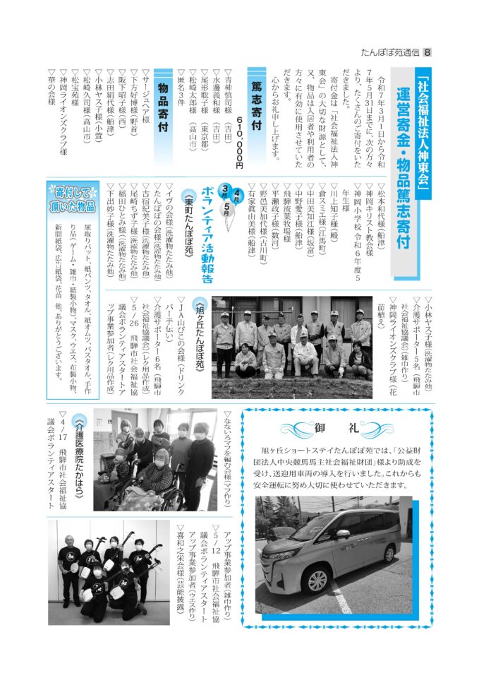 たんぽぽ苑通信第115号を発行しました。 投稿日: 2025/6/16 月曜日 カテゴリー: お知らせ r.yamakoshi 皆様のご感想やご意見をお待ちしております! ※今号を含め、これまでのたんぽぽ苑通信は、コチラにて読むことができます。