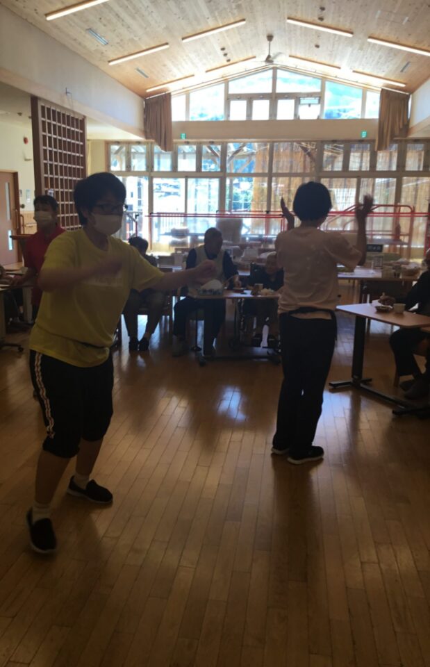 職員も盆踊りを踊りながら盛り上がりました。