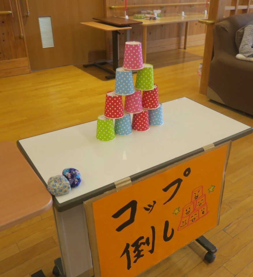 それぞれの懐かしい遊びに利用者さんは、真剣な表情で取り組んだり、ステキな笑顔が見られたりと楽しい時間を過ごしました。