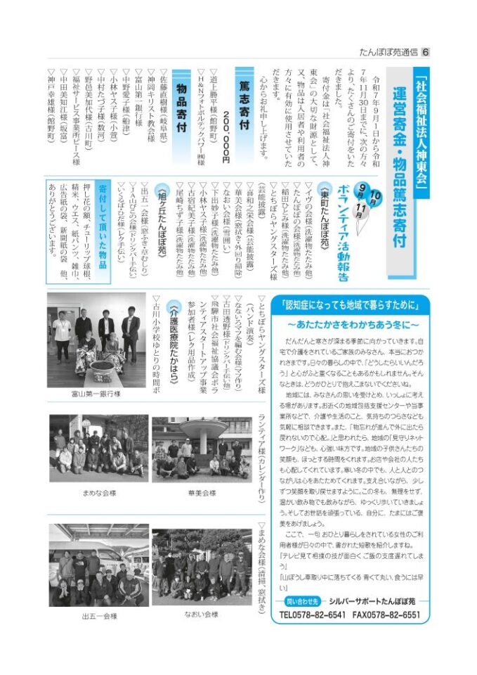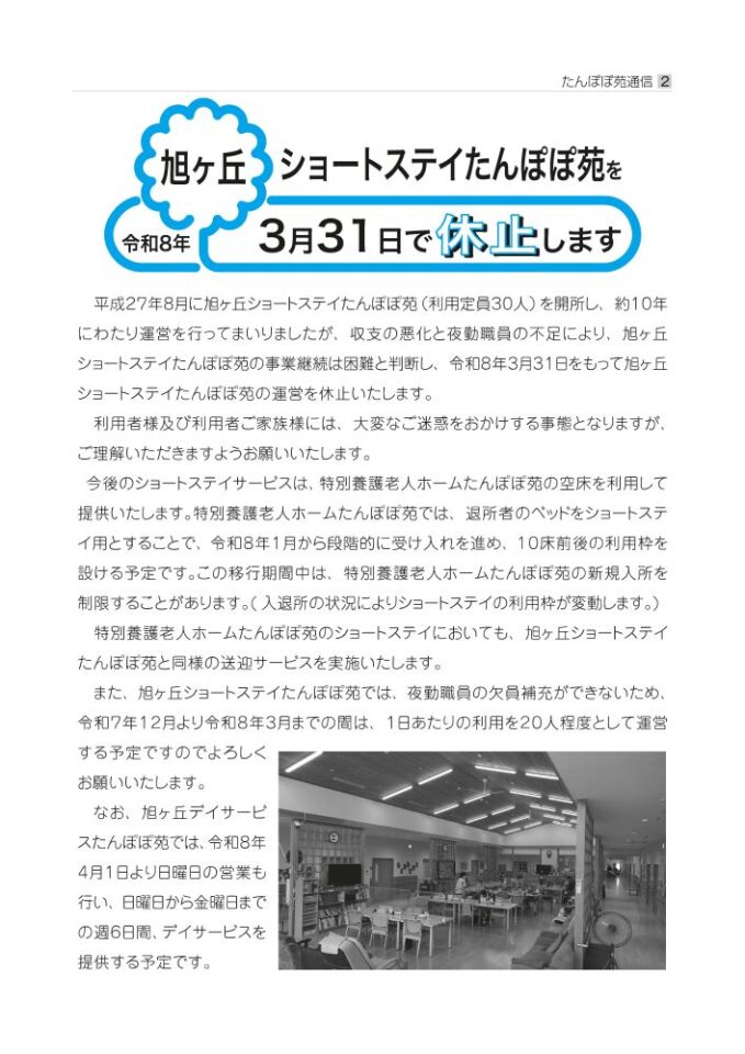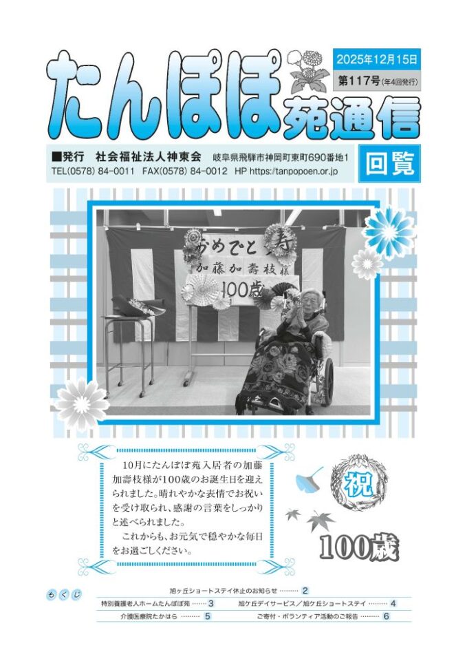 たんぽぽ苑通信第117号を発行しました 投稿日: 2025/12/15 月曜日 カテゴリー: お知らせ r.yamakoshi 皆様のご感想やご意見をお待ちしております! ※今号を含め、これまでのたんぽぽ苑通信は、コチラにて読むことができます。