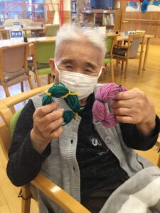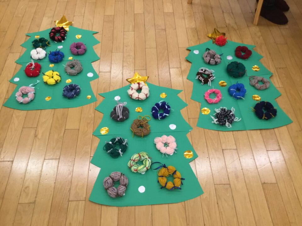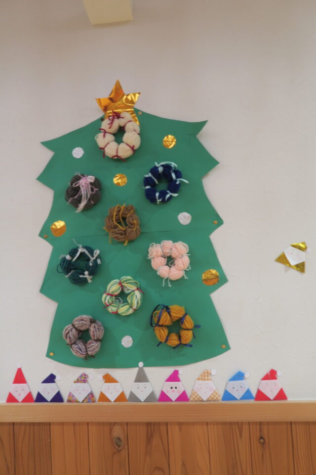 毛糸リースのクリスマスツリーができあがり!