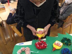 まずは、みんなで「サンタ作り」です。