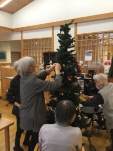 恒例のクリスマスツリーを利用者さんで飾り付け