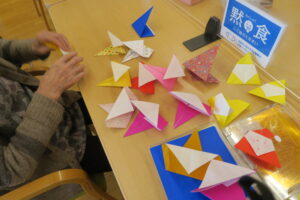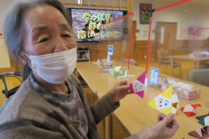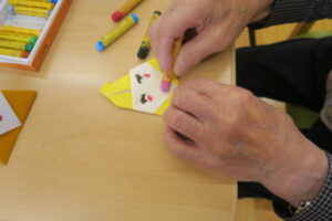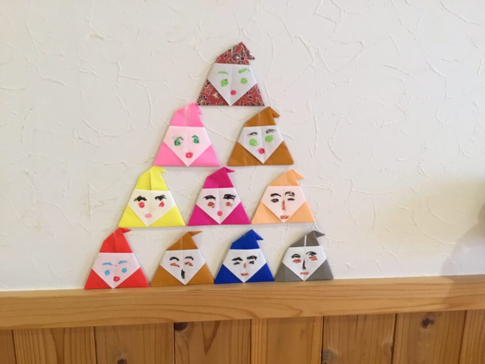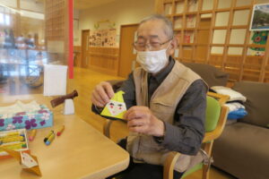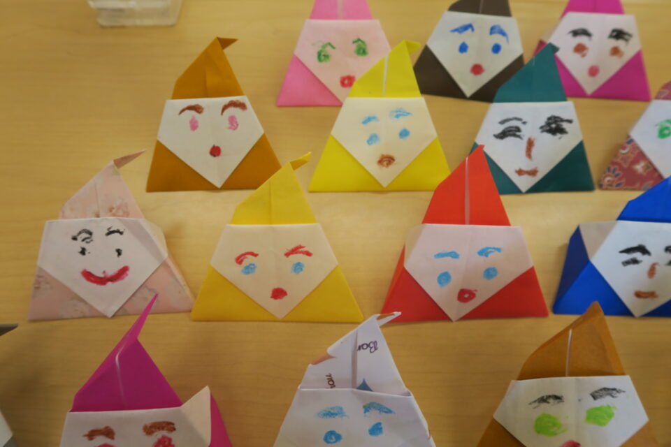 別の日には「折り紙でサンタ」をつくりました。